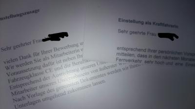 Das war auch lustig...meine Sachbearbeiterin riet mir doch mal bei Speditionen anzufragen ob die auch Frauen einstellen...die erste Spedition war Kiefel. Weil ich wusste das die Chefin ne Frau ist. Das erste was sie sagte war “Nein, das traut sie einer Frau nicht zu.“ Die fahren im Nahverkehr mit Kipper...Zuckerrüben, Getreide, Kalk. Ihre Hauptargumente waren der Staub, Dreck und die Hygiene unter der Woche. Konnte ich verstehen und ist auch was dran, aber ich hab ihr meine Sicht der Dinge erklärt. Nach knapp Net halben Stunde haben wir das Gespräch beendet. Ich war echt platt und die Zweifel kamen...aber fünf Minuten später kam auch ihr Rückruf und die Bitte mich persönlich kennen zu lernen :-)